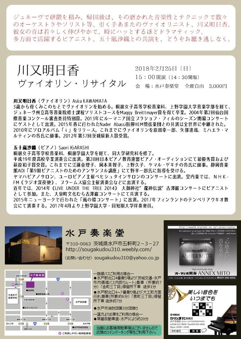 2018年2月25日 (日)川又明日香 ヴァイオリン・リサイタル