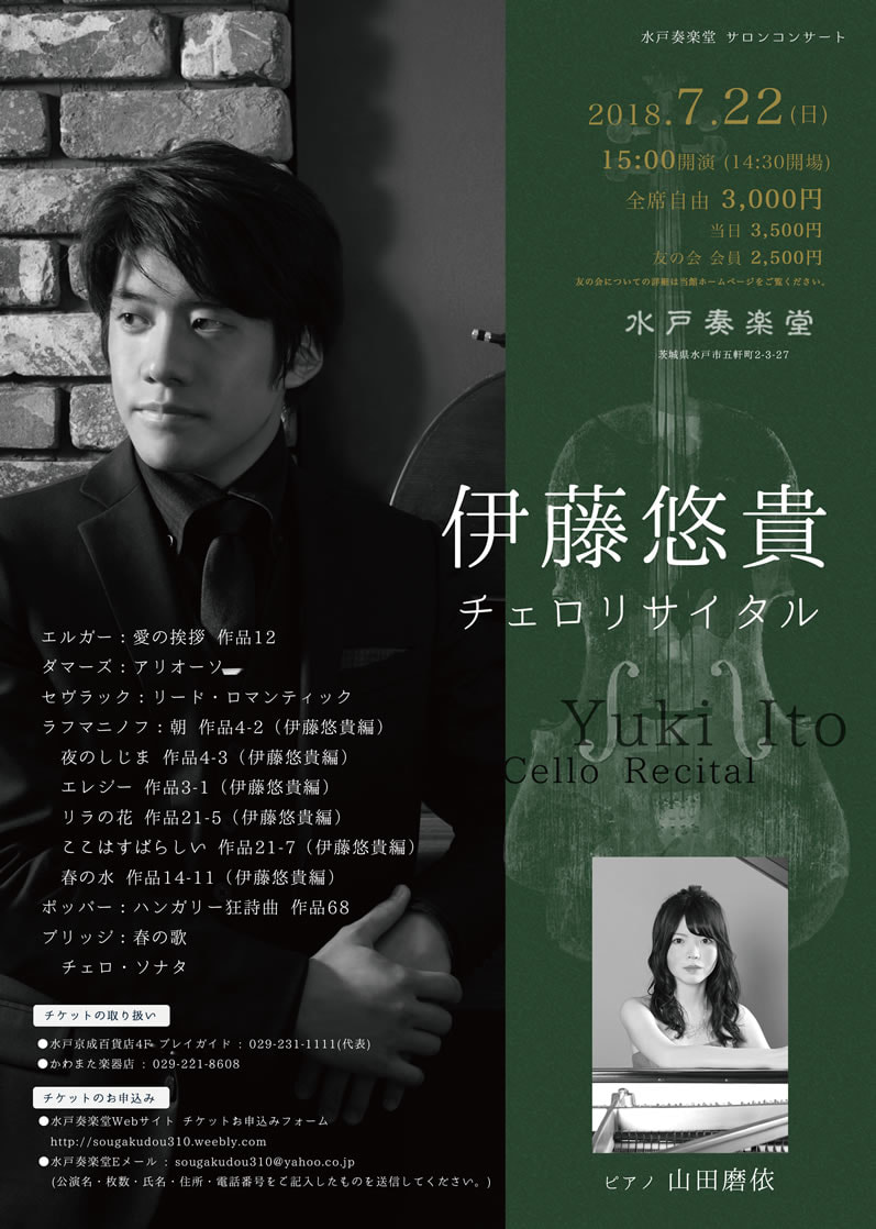 2018年7月22日 (日)伊藤悠貴 チェロリサイタル