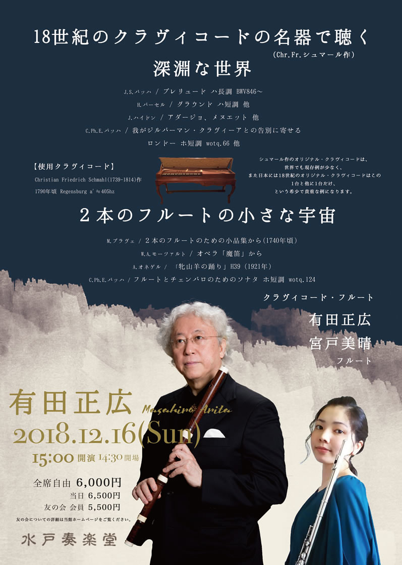 2018年12月16日 (日)有田正広 フルート&クラヴィコード、チェンバロコンサート