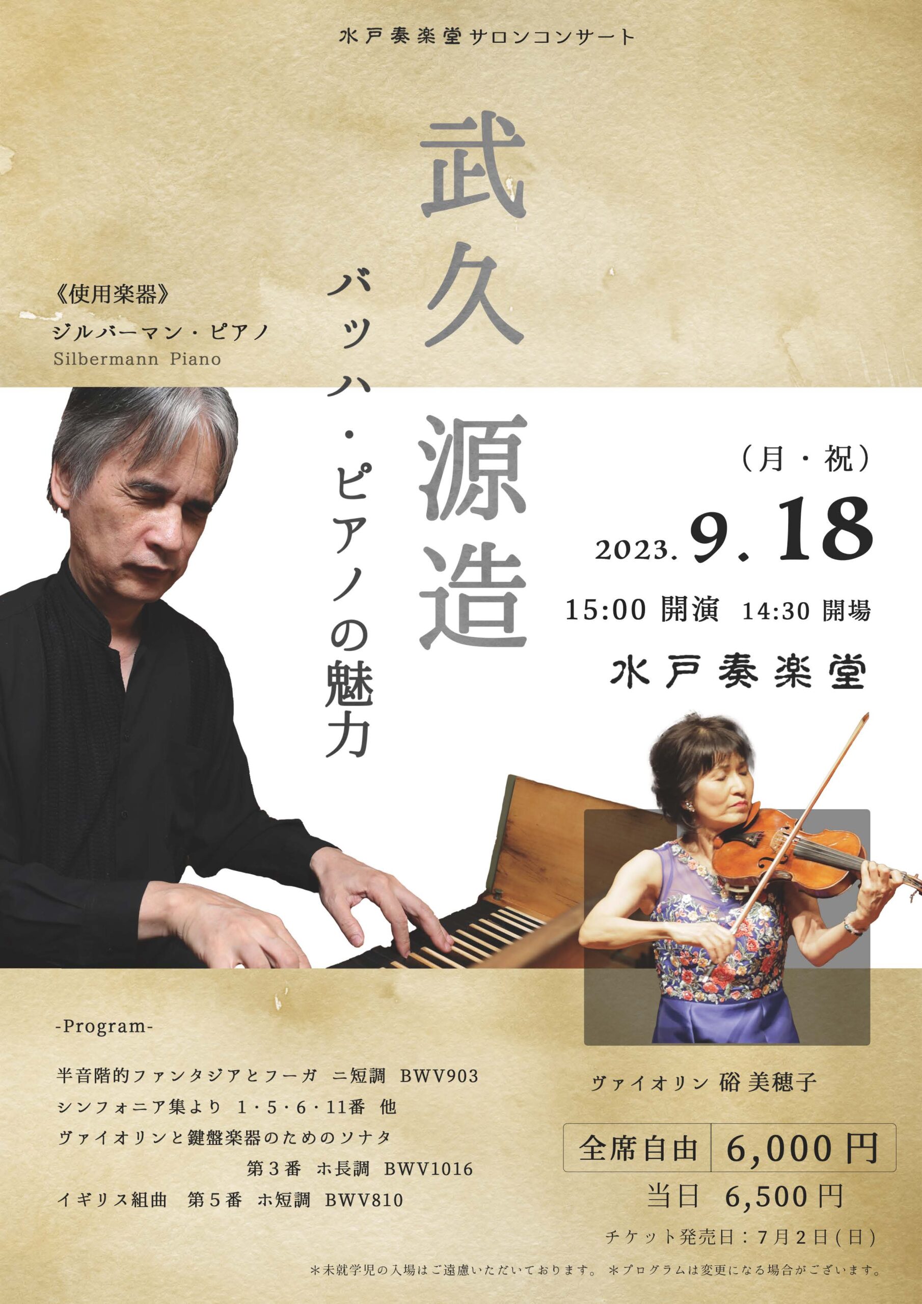 2023年9月18日(月・祝)武久 源造「バッハ・ピアノの魅力」
